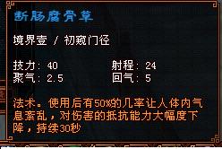 50级技能断肠腐骨草:没怎么用过感觉好象20和40的集合体,自己也不太清楚用过几次但是太忙也没注意效果