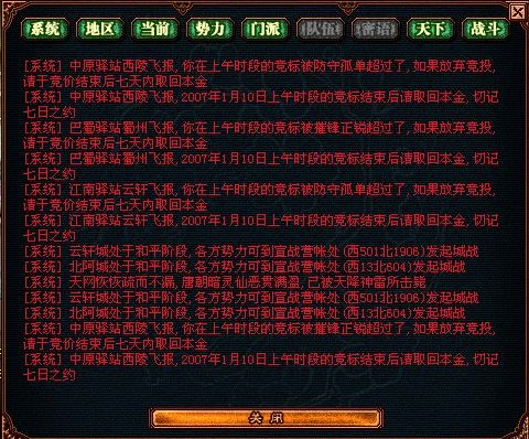 选好客户对象后,我们就可以根据此点来选择应该竟价的驿站了。在天下2里,每个地图都有很多个驿站,但是有两类驿站千万别投,谁投谁亏本。一种是各个门派的驿站,另外各个边界的驿站(如北江南界等),由于飞行符和黄土神石的存在,这类驿站一般很少用到。现在我们来看看天下2有哪些主要驿站,哪些值得我们去竟价经营。