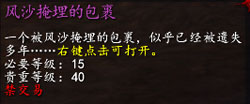 打开可获得焚天魔铁等各种升级70套部件的材料,该物品由地虫螟王掉落。 |