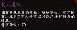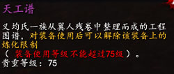 可以解除75级及以下装备上的炼化限制。由星火祈礼商出售。 |