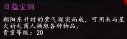 低级代币,可与活动商人换取物品。完成螟虫之祸、斩草除根活动后可获得。 |