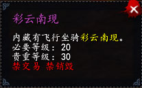 飞行坐骑,持续时间30天。由星火祈礼商出售。 |