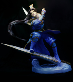 富有动态的造型加上轻快的蓝色增加了整个手办的动感和轻盈飘逸的感觉。更加突出了弈剑听雨阁的特点个性。