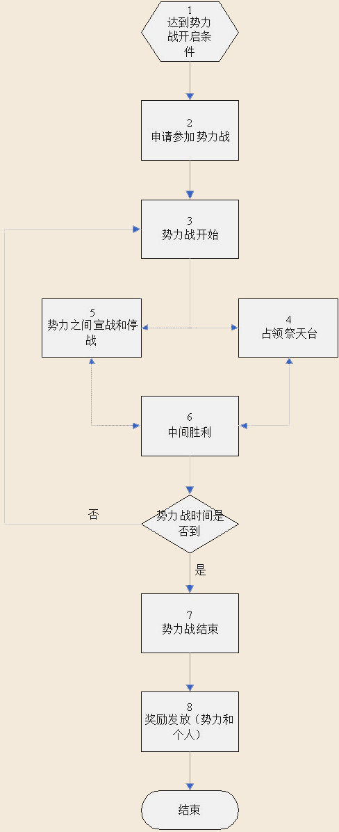 势力战开始 势力战开始以后,所有参战势力进入势力战状态,不能进行任何的势力****。加人、弹劾等等。但是势力主可以踢出势力成员。