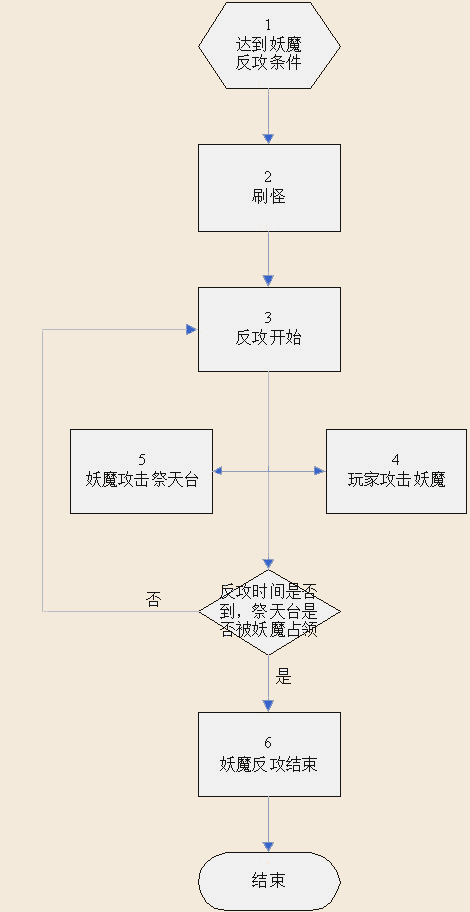 **结束条件 **时间到,或者祭天台被妖魔攻占(每个祭天台单独计算)则妖魔**结束。大荒转入平时的状态。
