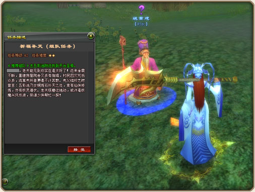 村长让你找到女娲的侍女天台圣母,她会让你开启女娲炼炉,并在附近寻找烛煤,为神炉的重燃助一臂之力。这之后他会交给你一份阳之元神和阴之元神,你可以找异性玩家交换元神,找到旁边的龙影童子和凤仪童子获得经验技能奖励。当然,如果不方便换取的话,你也可以找旁边的元神商人合仪,以少量的金钱,买到所需要的元神完成任务。
