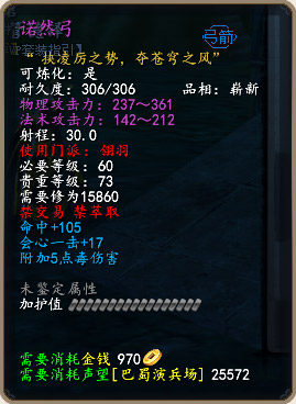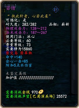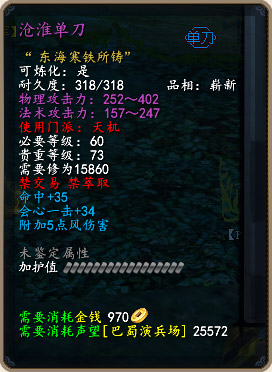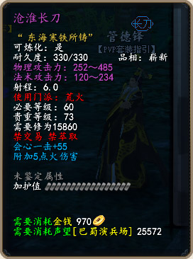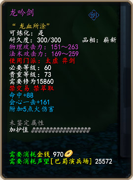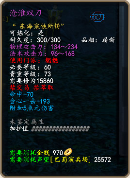 注:60战场武器将在各门派的军需官中出售,如果想获得更强的属性,还能在六爻鸿蒙炼处重铸,获得更强属性。