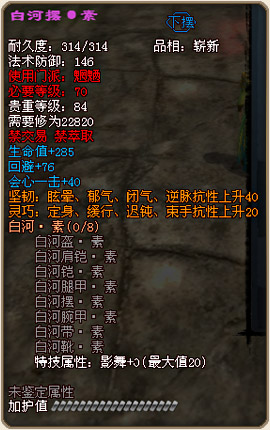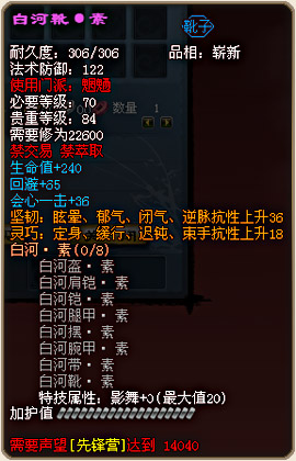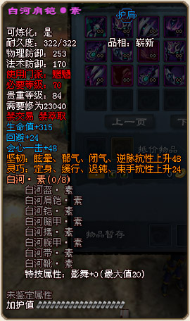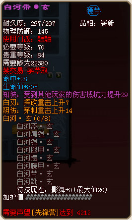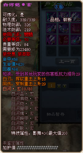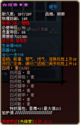 各门派70级战场套外形及部分属性图预览: