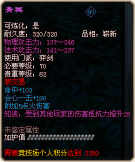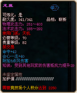 注:70战场武器将在各门派的军需官中出售,如果想获得更强的属性,还能在六爻鸿蒙炼处重铸,获得更强属性。