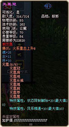 另:70套的部件可以使用相应的原料,前往六爻鸿蒙炼处重新锻造,获得新生(即进行洗点);