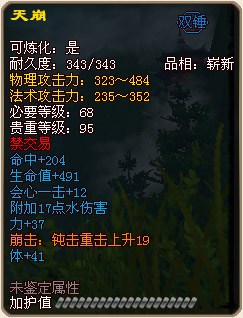 真•天域系列武器的相关属性图以及装备效果图:
