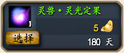 灵兽•灵光定果:当前激活灵兽等级在1-50级时可以使用。使用后,可以使当前激活的灵兽增加21点喜悦点。(如果喜悦点为正值,则每喂食1件装备增加灵兽成长值的同时,扣除1点喜悦点,成长值加倍。)