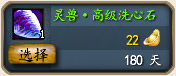 灵兽•高级洗心石:使用后,随机重置当前激活的灵兽的六项资质,随机范围较大。(资质越高,灵兽对人物的加成和灵光一闪的几率就越高!)