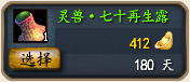 灵兽•七十再生露:当前激活灵兽等级在1-70级时可以使用,使当前激活的灵兽潜能点全部重置,可重新分配。如果该灵兽当前属性点数小于最大属性点数,则会增加1点潜能点。